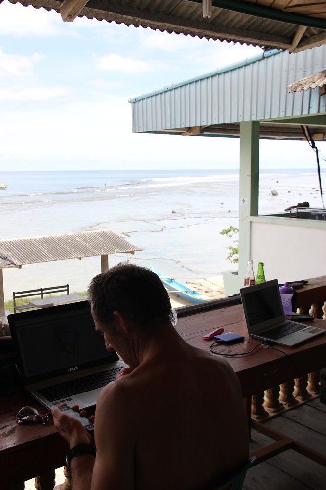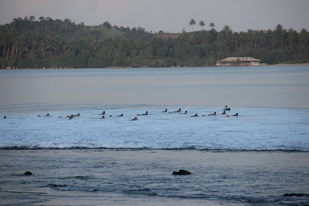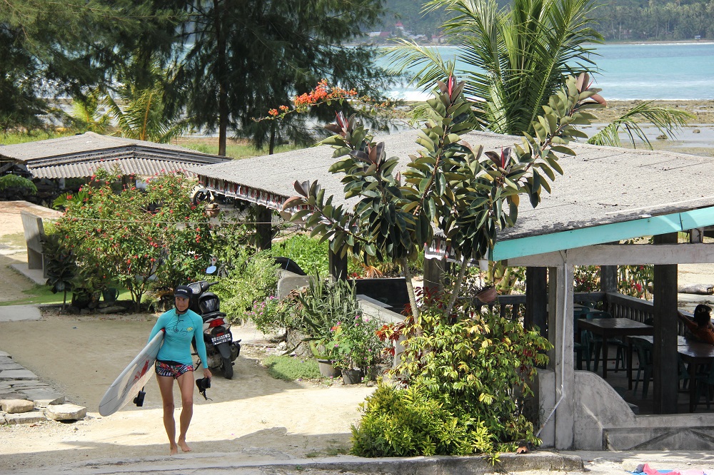 SURFING. Ho. Hum. The few surfs we had were ordinary and crowded. I guess you could say we didn’t score Simalue.