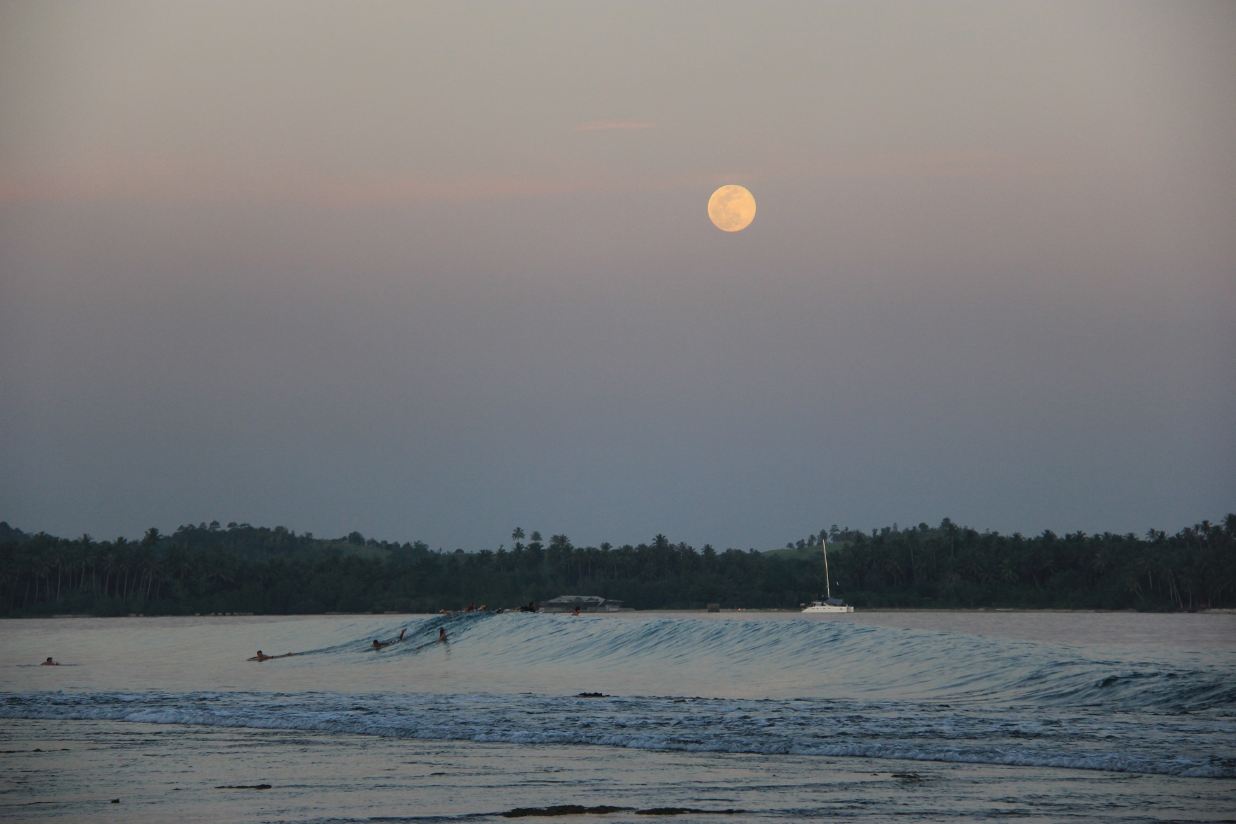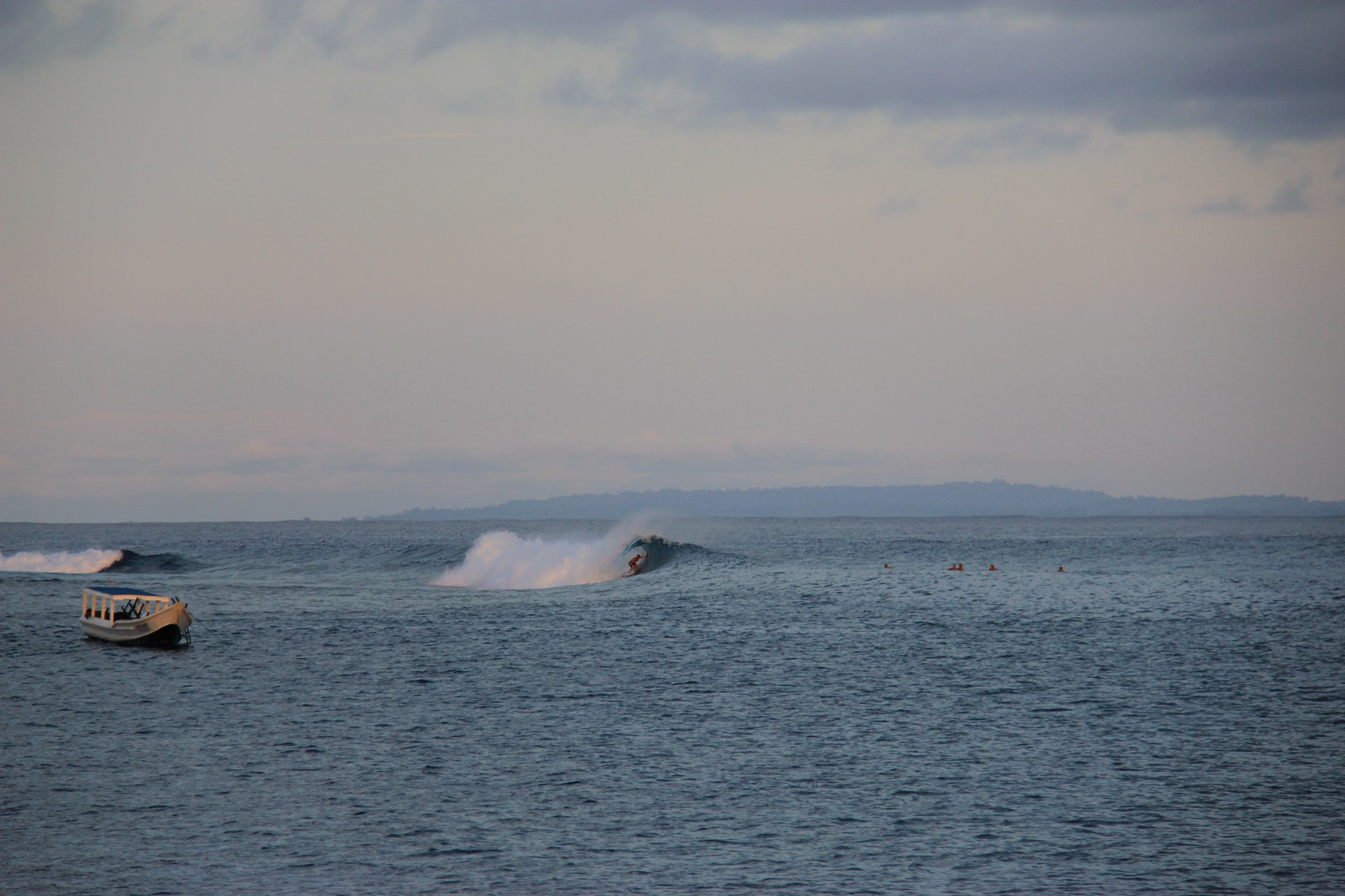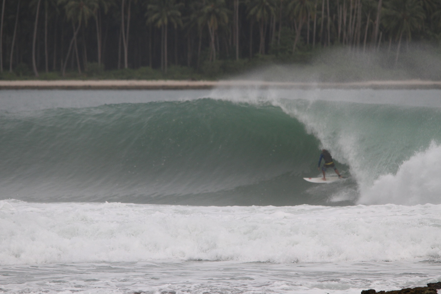 ANCHORAGE. One of our two favourite anchorages in Indonesia is called “The Playgrounds”, which confuses Willow because at this place there are no kids, no swings, no slides. There are, however, eight surf breaks. This is one within paddling distance of where we anchor Zinc.