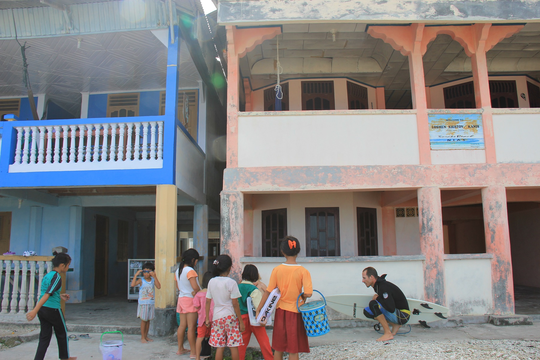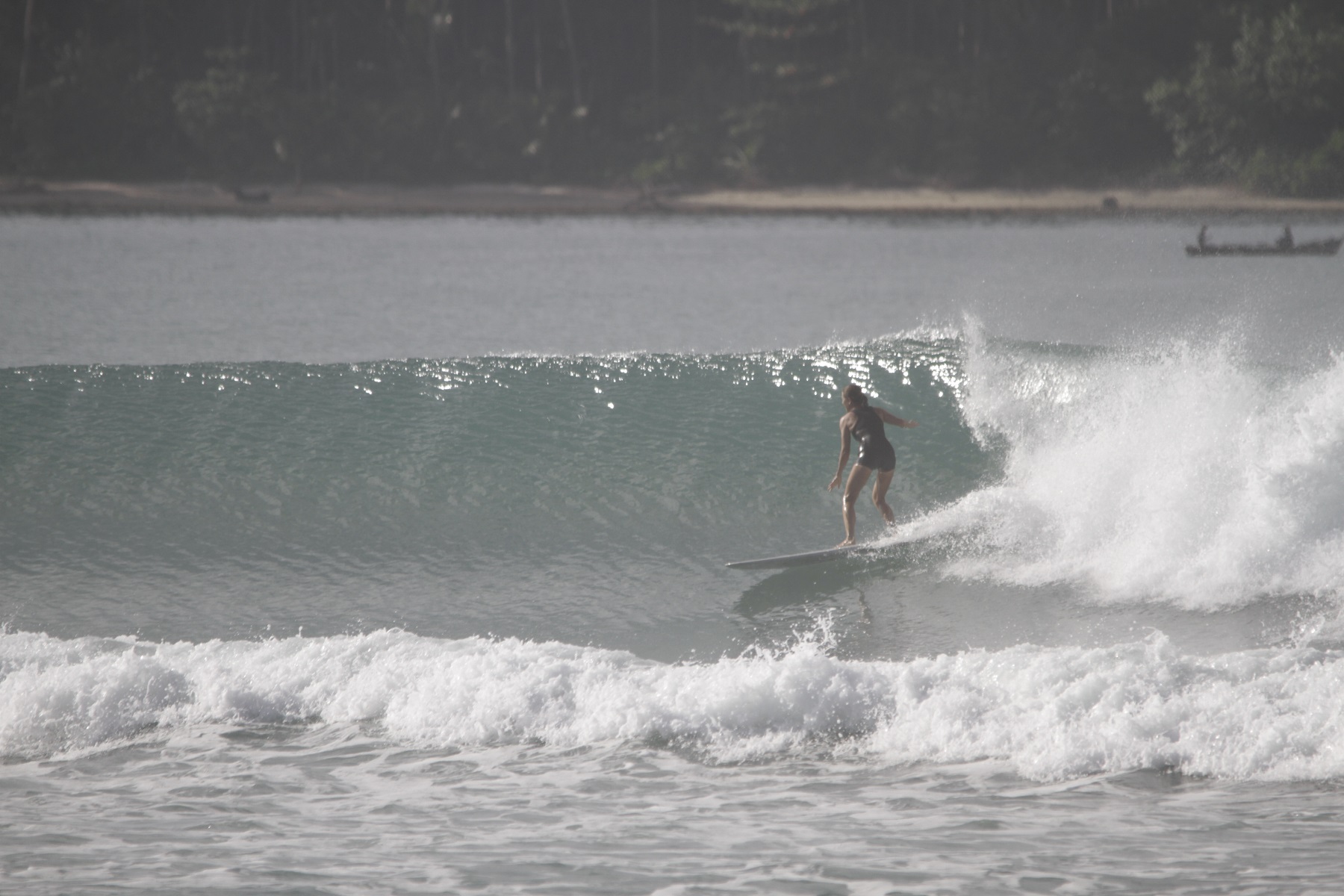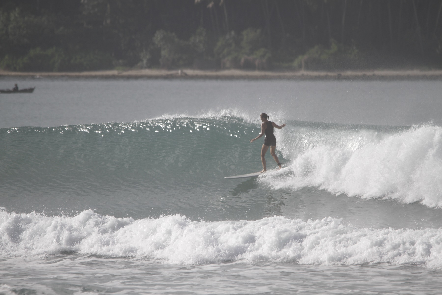 ANCHORAGE. One of our two favourite anchorages in Indonesia is called “The Playgrounds”, which confuses Willow because at this place there are no kids, no swings, no slides. There are, however, eight surf breaks. This is one within paddling distance of where we anchor Zinc.