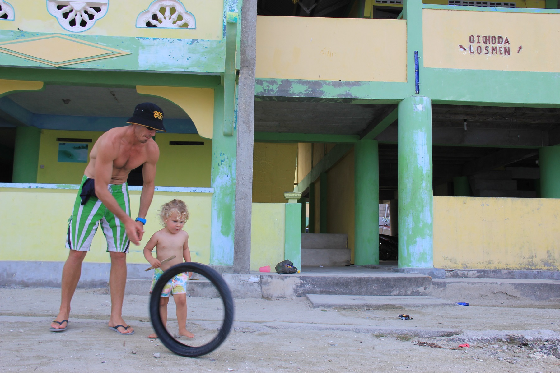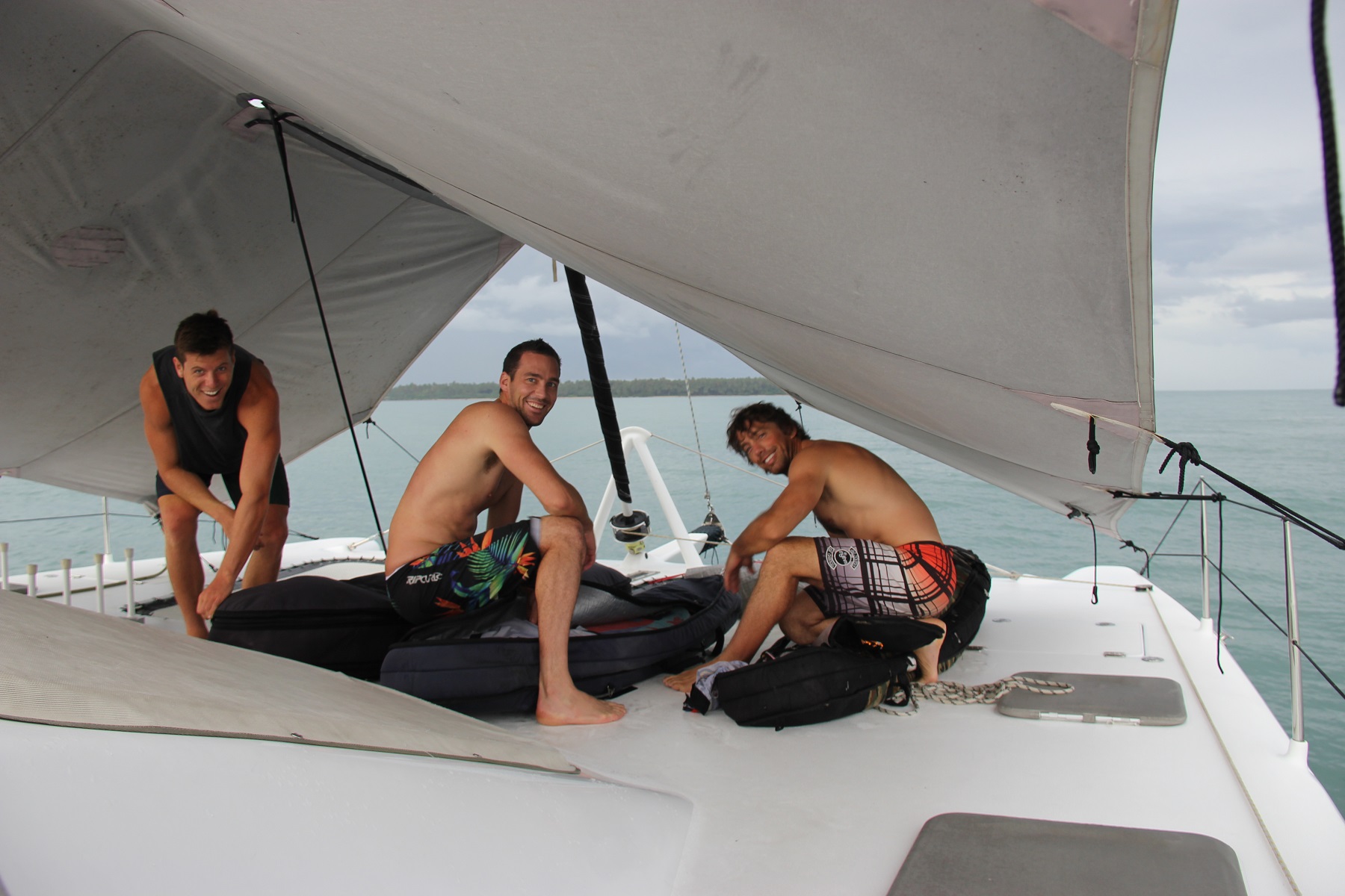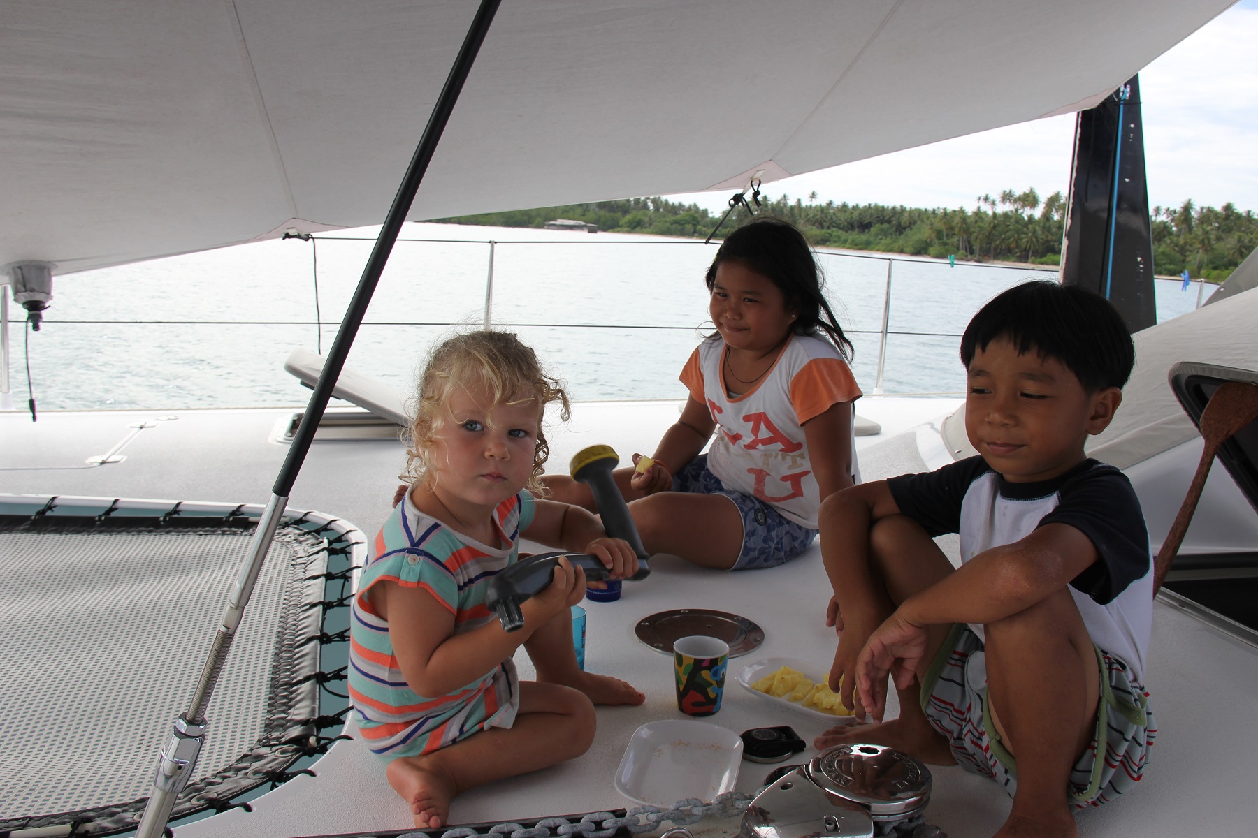 ANNOYANCE. Our mission to Asu was frustrated by the weather. We planned to leave at 2am on a morning that turned out to be the only stormy morning of the month. These fellas helped us work for half a day to prepare Zinc to leave. They bought us chocolate and beers. They read bed-time stories to Willow. And they spent a rocky night on board Zinc. Only to be told the next morning, “Repack your bags boys. We’re not going anywhere.” We felt terrible. They accepted our decision with good humour (or so they represented to us) and they took a car and a ferry to Asu instead.