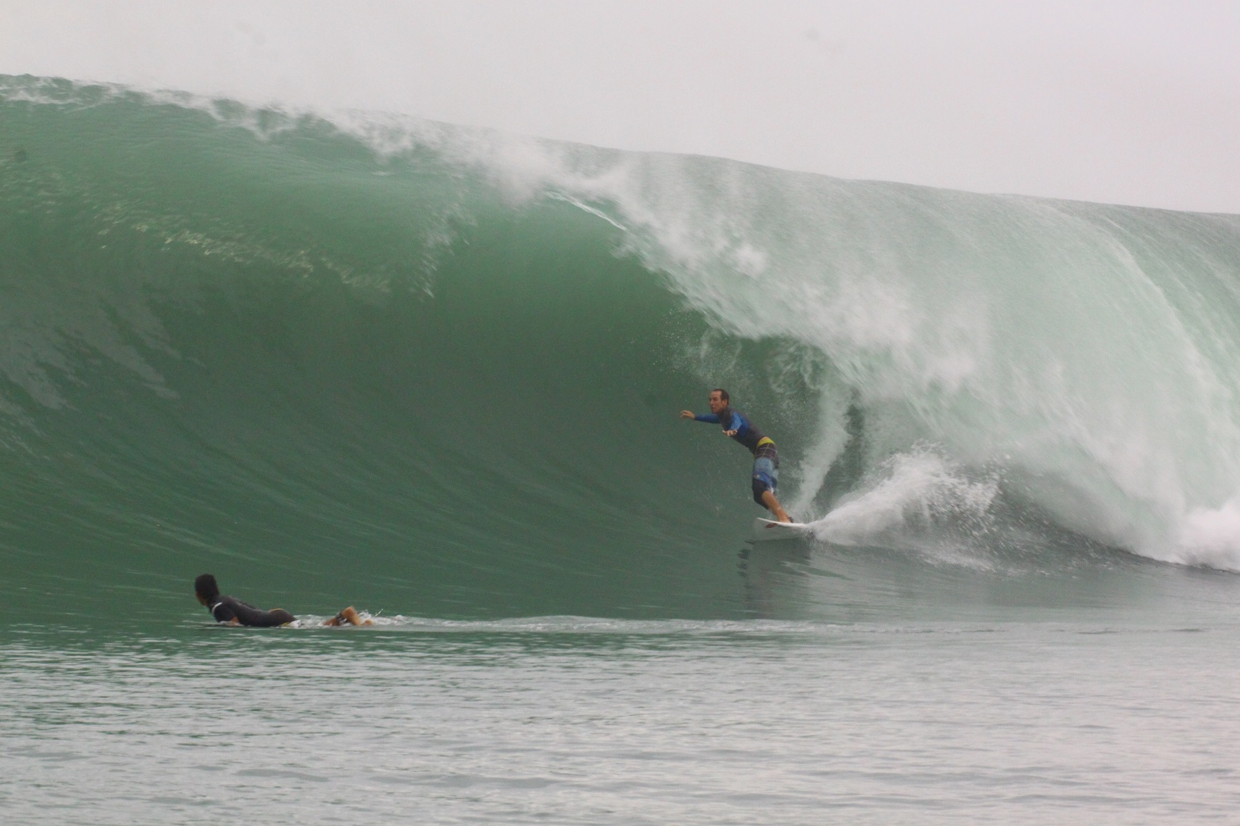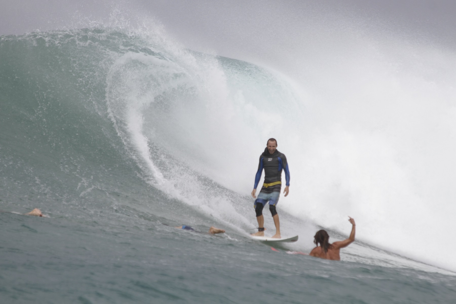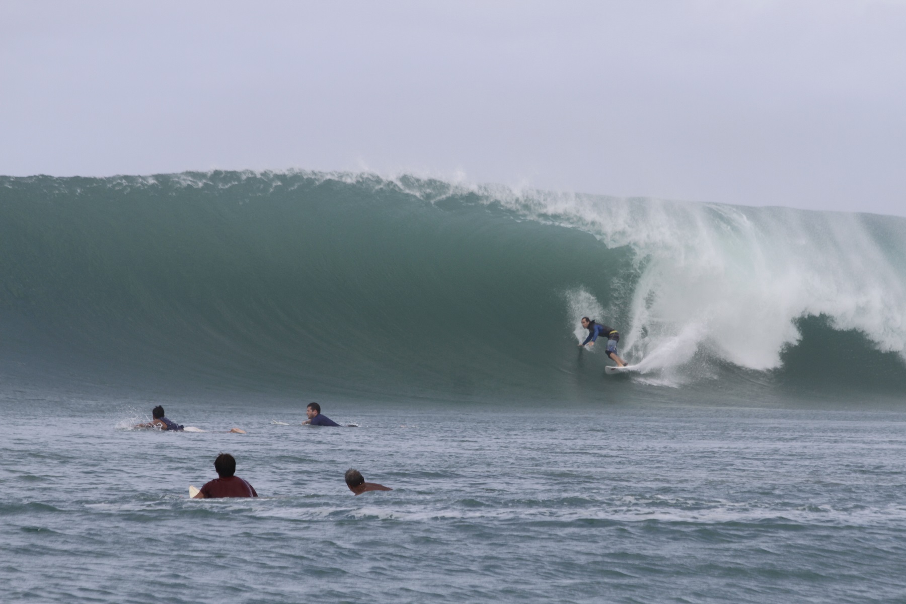Now, I never drop in on anyone intentionally and I always pull off a wave if someone is on my inside, even if they’ve snaked me, but Dale has been in my ear lately telling me to keep riding if I’m up first. This Japanese guy and I came to a kind of understanding: he’d snake me; I’d drop in on him. We shared numerous “party waves”.