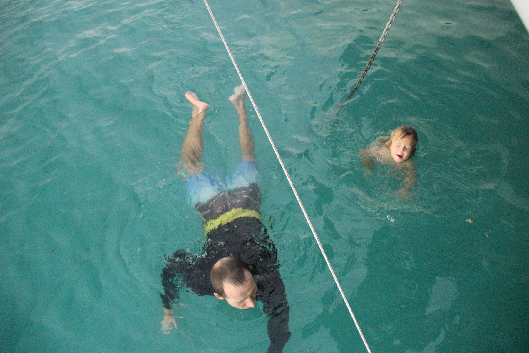 …Swimming from the anchor chain to the bridle to the anchor chain to the bridle to the anchor chain.