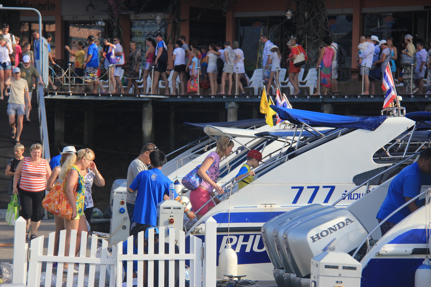 …Marina living. We have a love-hate relationship with marinas. Generally, we hate them, but after six months at anchor in Indonesia, we loved being attached to a dock for a few days. But gee it was hard to get on and off our dock at peak hour. These happy punters are heading out on a day tour of Phang Nga Bay.