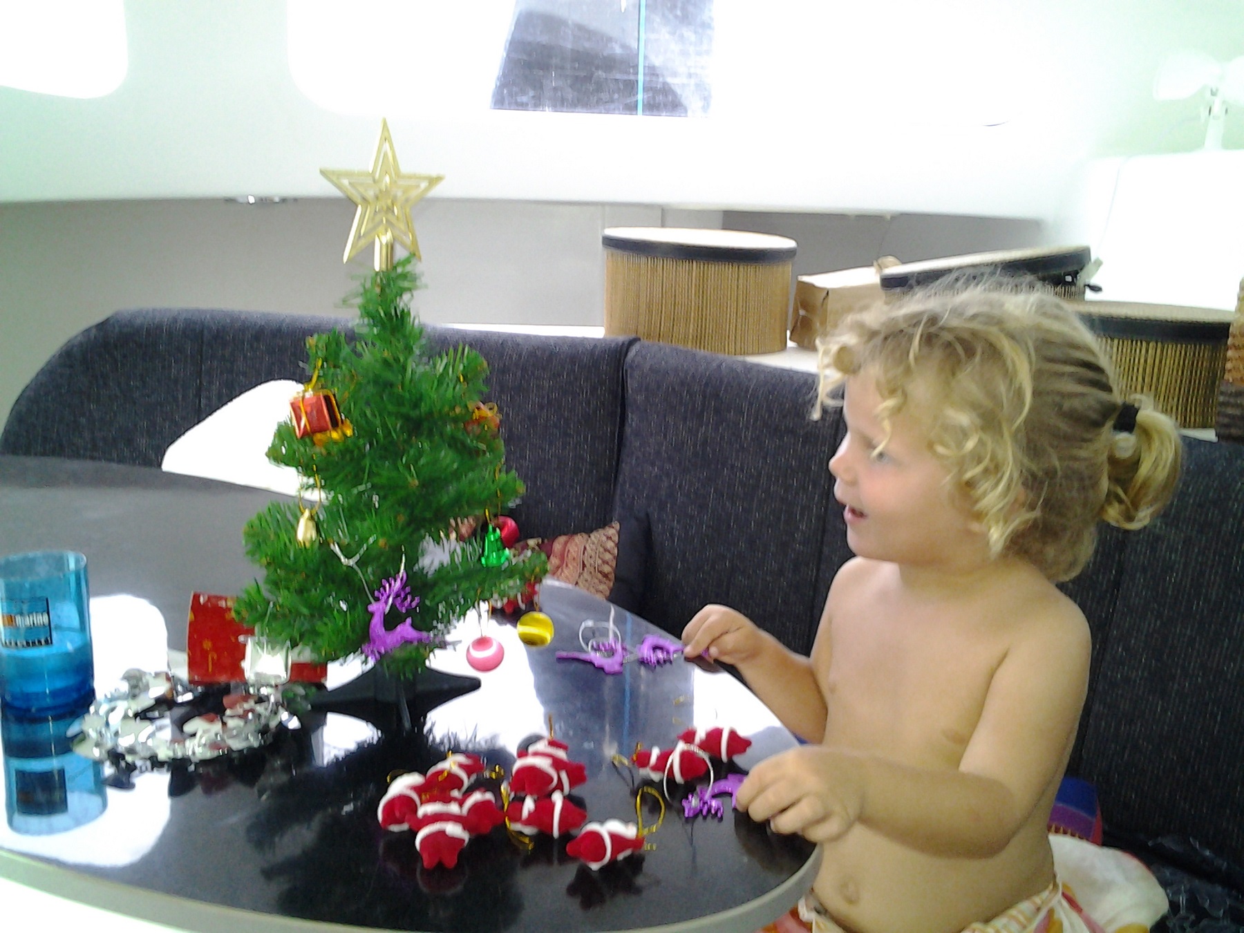 …and decorated a Christmas tree (which we went on to re-decorate and re-decorate and re-decorate — is this normal?? I am new at this decorating-a-tree-with-a-kid thing).