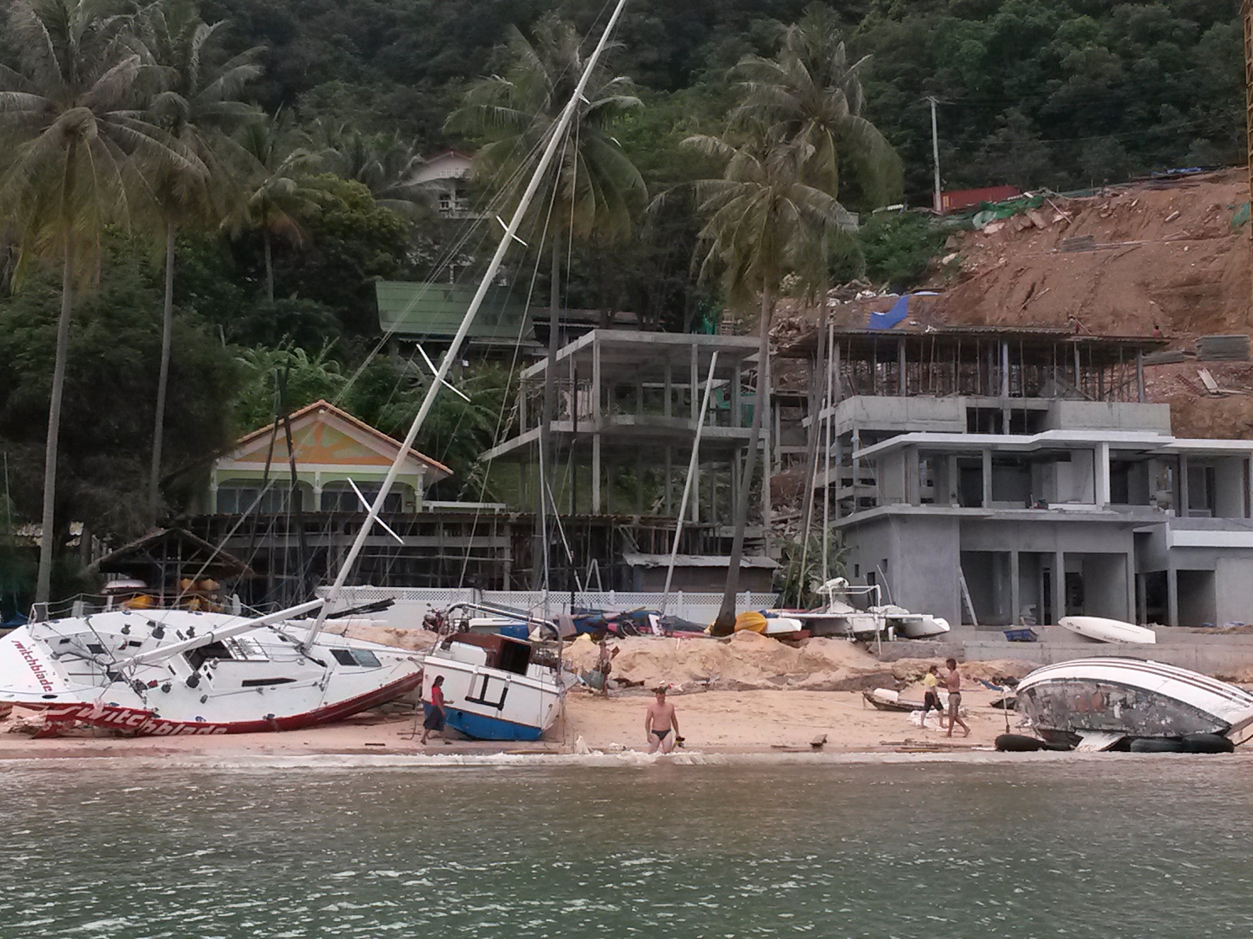 …Unfortunately, too many other boat owners missed / ignored / didn’t believe the forecast. Forty odd boats ended up on beaches and rocks around Phuket.