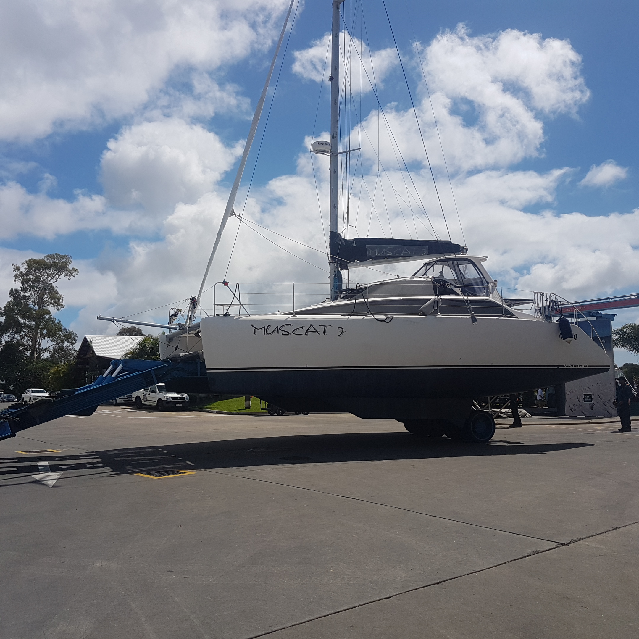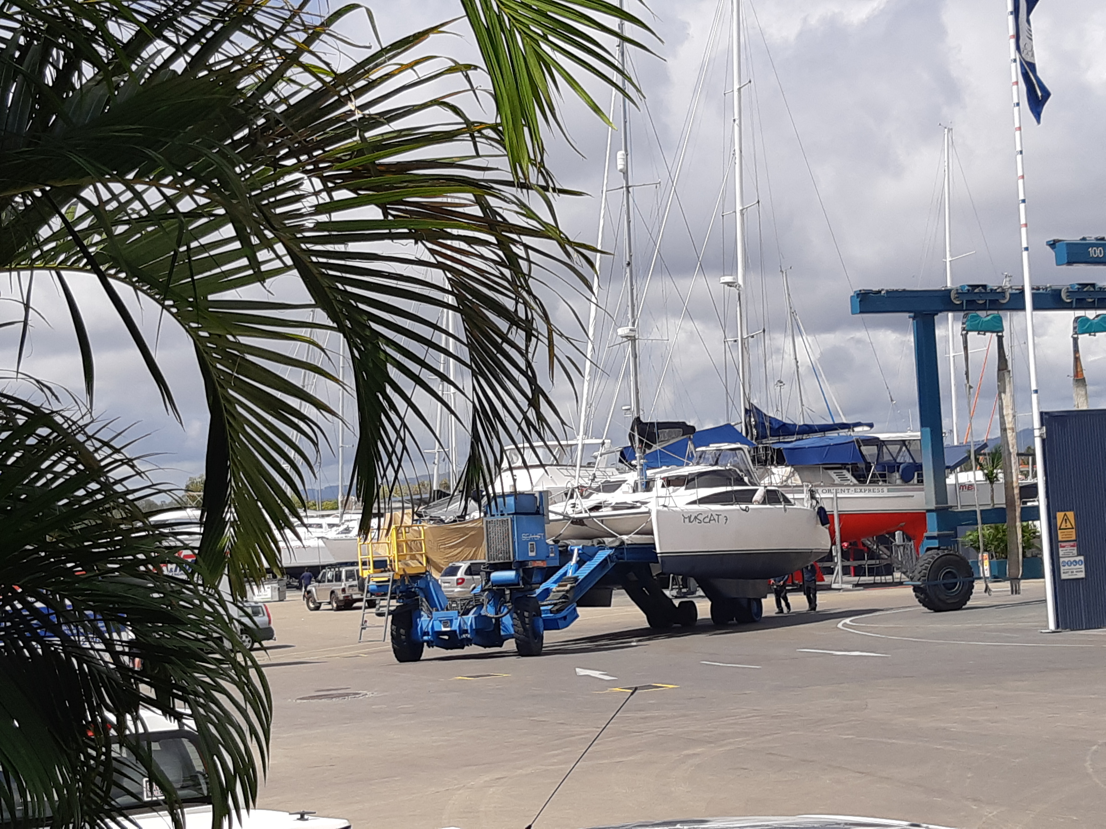 BOAT. While we worked, MUSCAT 7 hung tight at the marina…