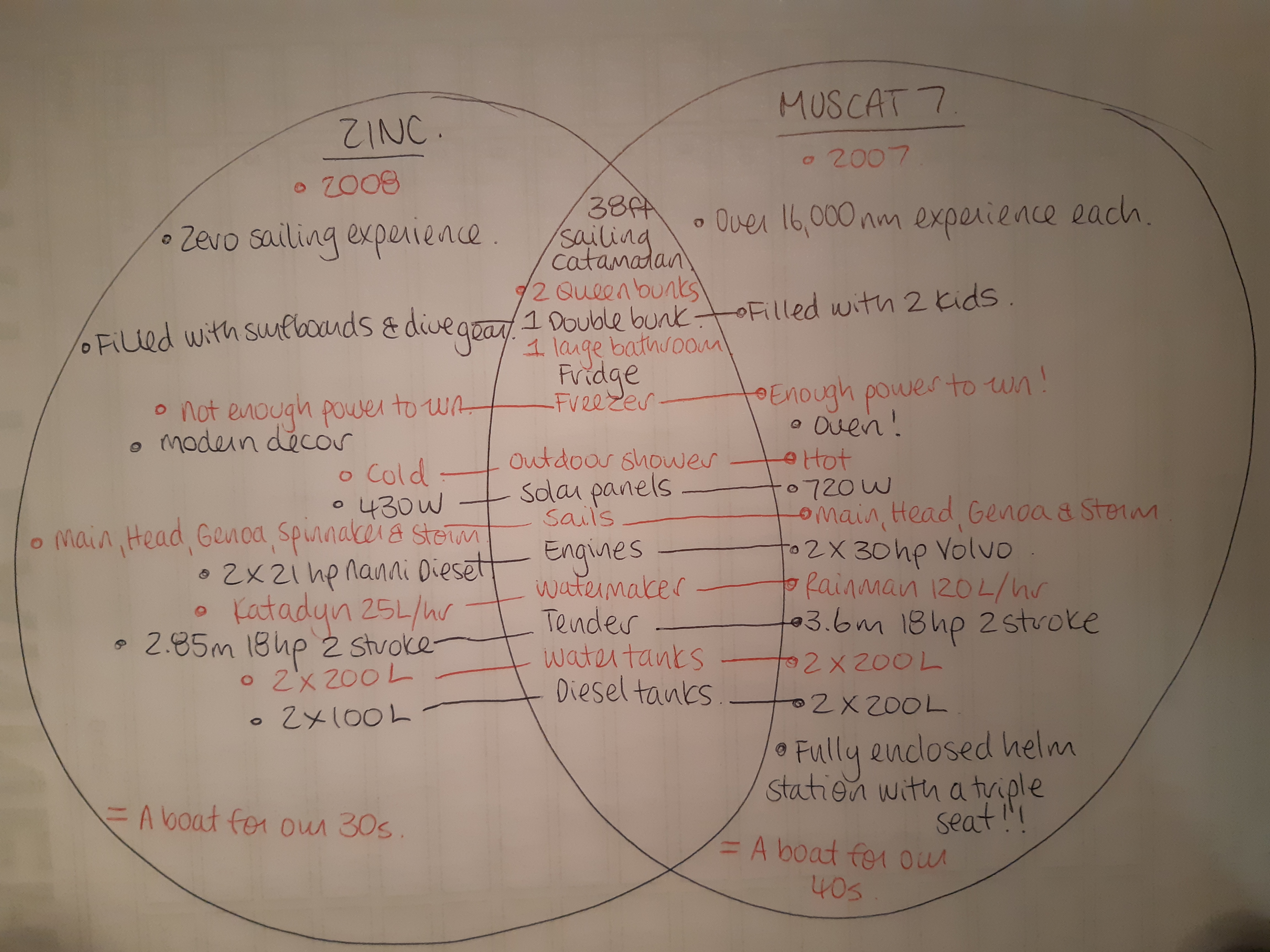 This is the first edition of Zinc sailing on MUSCAT 7. Welcome! It feels as though we’ve done this before… And we have, in a way, ten years ago, on another boat, without kids. Here’s a Venn Diagram.