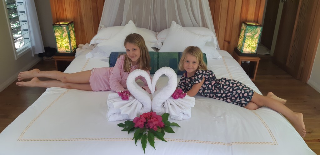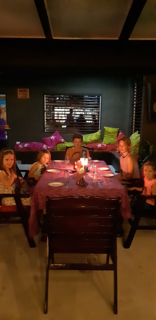 One night, the resort staff asked if our girls could be seated with other yachtie kids. “Oh yes please!” we cried. Dale and I loved the adults-dining-separately-to-kids thing.