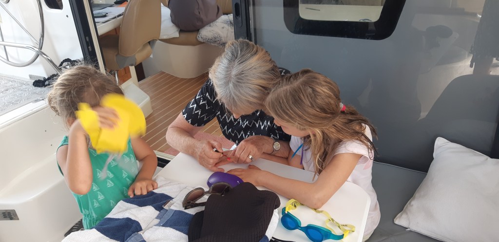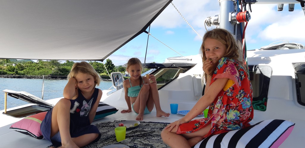 I felt awful, like a terrible parent, for a millisecond. Remember here, yachtie families spend 24/7 together. It’s generally a wonderful, special time, but for goodness sake, give me a break. “What type of kids want to sit with their parents when a fun kids’ table is organised?” I thought to reply. I held my tongue.