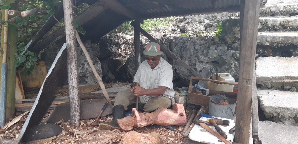 And, was well into his carving. The kava bowls for sale in Suva are carved on this island.