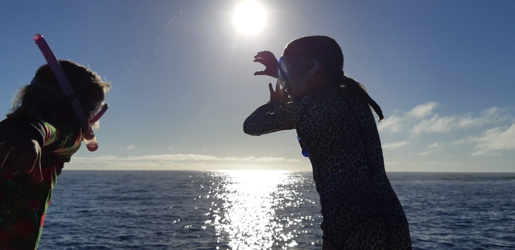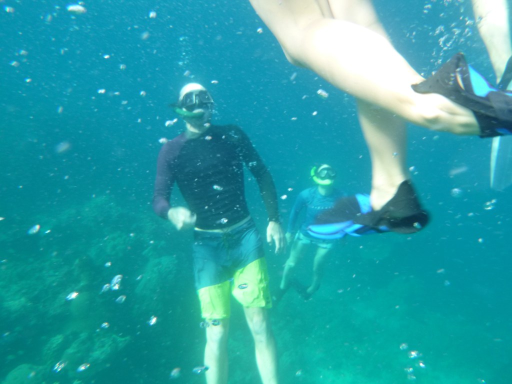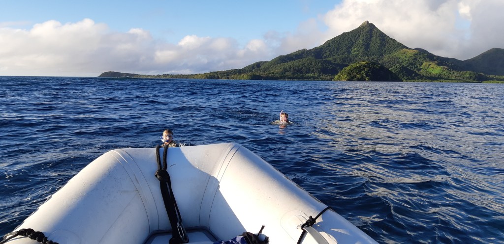 SNORKELLING. One morning was particularly eventful. Hazel was buzzed by an inquisitive grey shark. She screamed. Our marine biologist yachtie friend buzzed the shark back. It slunk away. Hazel set her jaw and flutter kicked on.