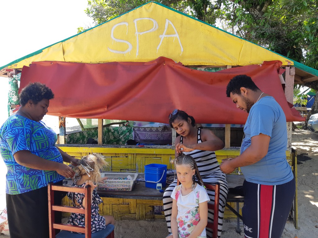 Dreams came true in the local huts next to the resort. The bogan braids took only three hours to put in. They took three times as long to take out. Sigh.