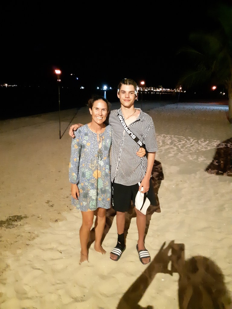 I am the Godmother of Kristy’s eldest son. Sadly it had been some time between photos… Here’s a then / now flashback. The photos on the left were taken over ten years ago as we sailed north along the Queensland coast in our first boat ZINC.