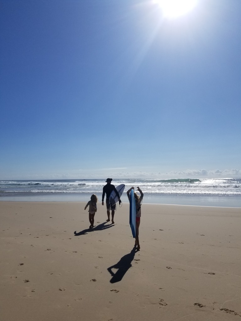 One day on our way to the surf, a police helicopter flew low above us and Hazel whispered: “Should we hide in the bushes Mummy?”