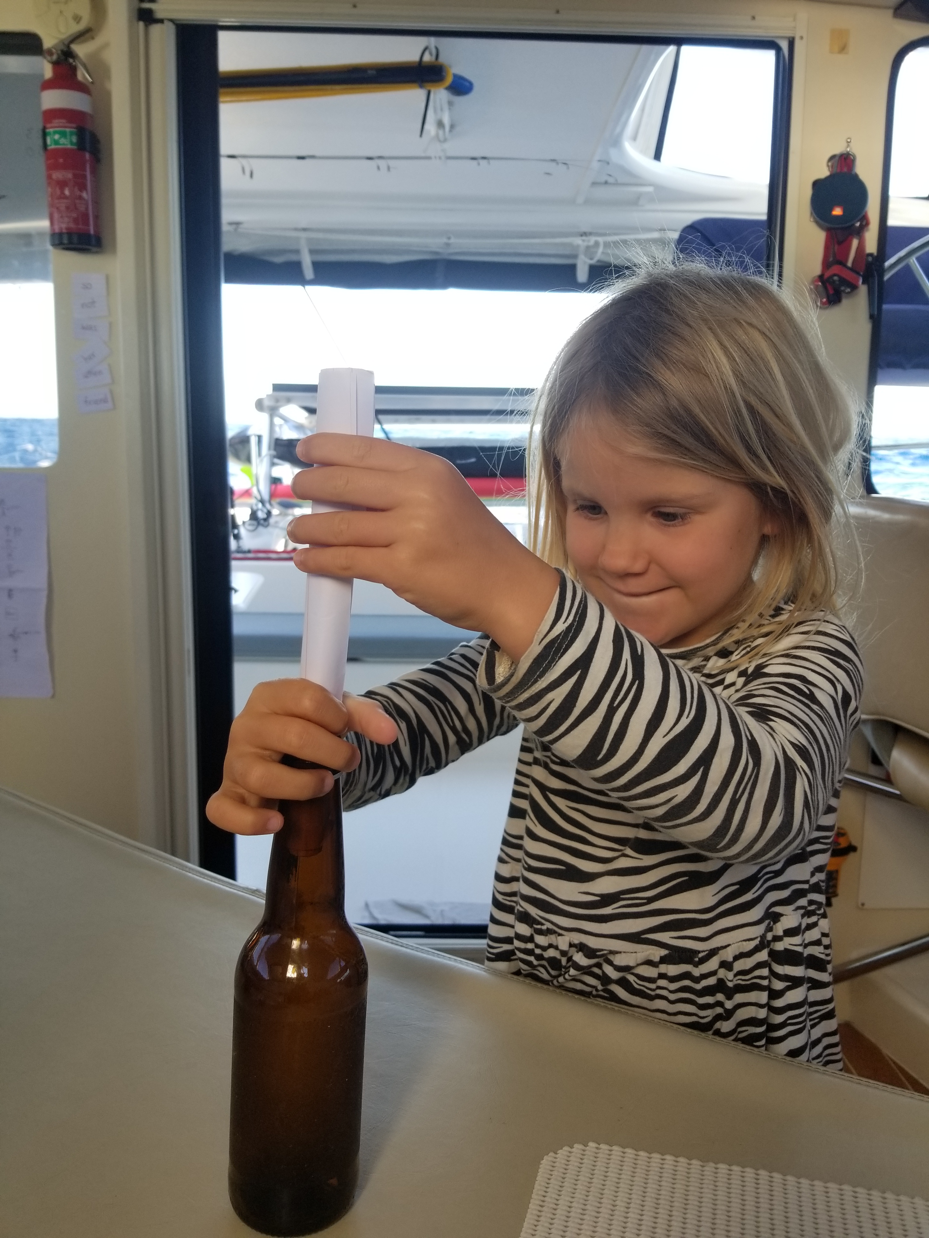 MESSAGES IN BOTTLES While we were in the Coral Sea – as remote as most sailors get – the girls wrote messages and popped them in bottles.