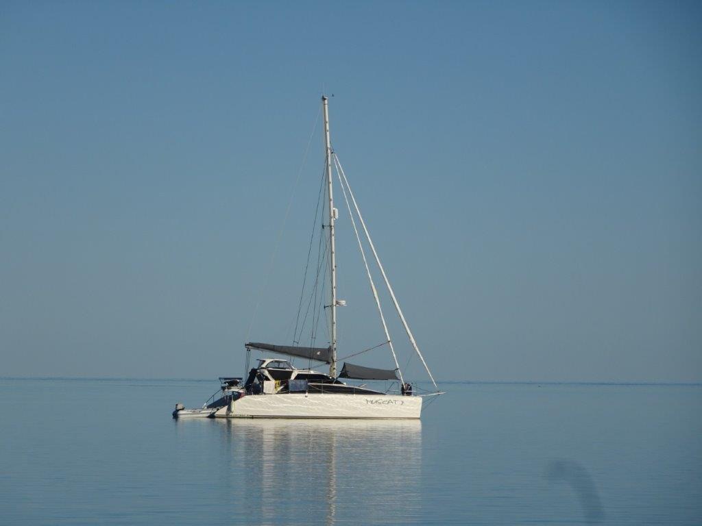 It is always bizarre to anchor with no land (or sand) in sight.