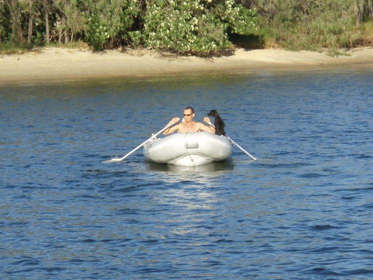 7. If you flip the tender in the shore dump, the engine will flood and you will need a mechanic to fix it. If you cannot find the spoodle after flipping the tender, lift a corner of the (upside-down) tender and she will scamper out and up the beach.