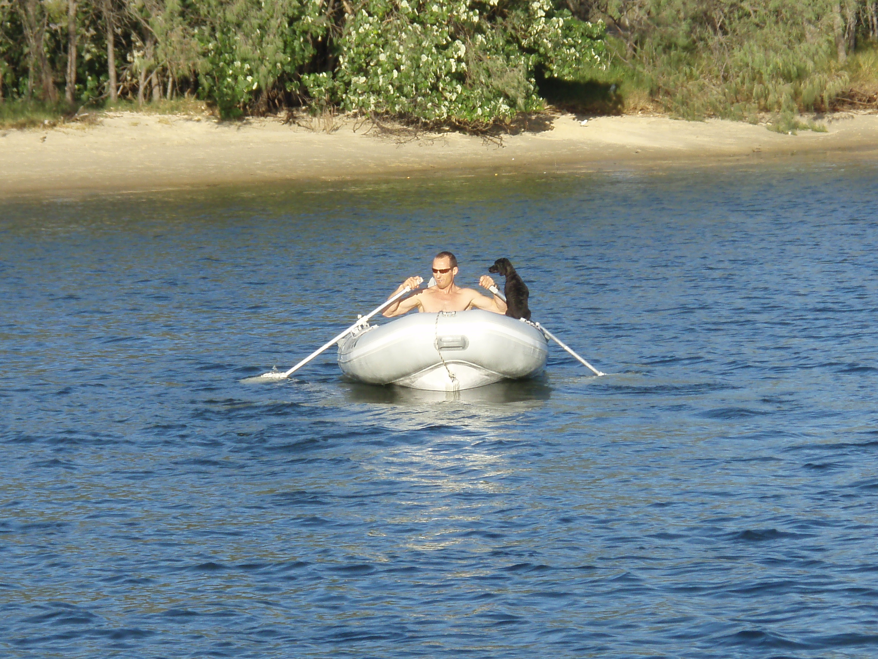 7. If you flip the tender in the shore dump, the engine will flood and you will need a mechanic to fix it. If you cannot find the spoodle after flipping the tender, lift a corner of the (upside-down) tender and she will scamper out and up the beach.