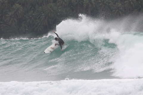 *4 to 2 [zero] Right reef break. Four linked barrel sections pre-2005 earthquake have turned into two linked barrel sections post-2005 earthquake. Unfortunate.