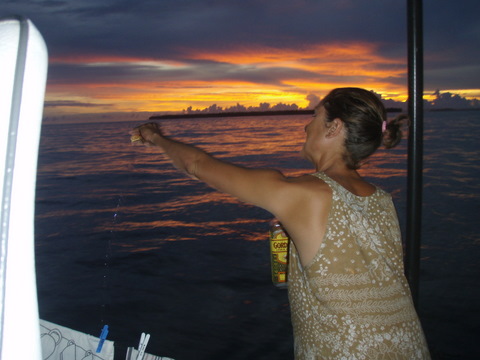 *Tengirri. One 25 pounder. Caught on our “1000 mile lure” (it swam 1000 miles, caught one fish, died (from being chomped and twisted by the tengirri)).