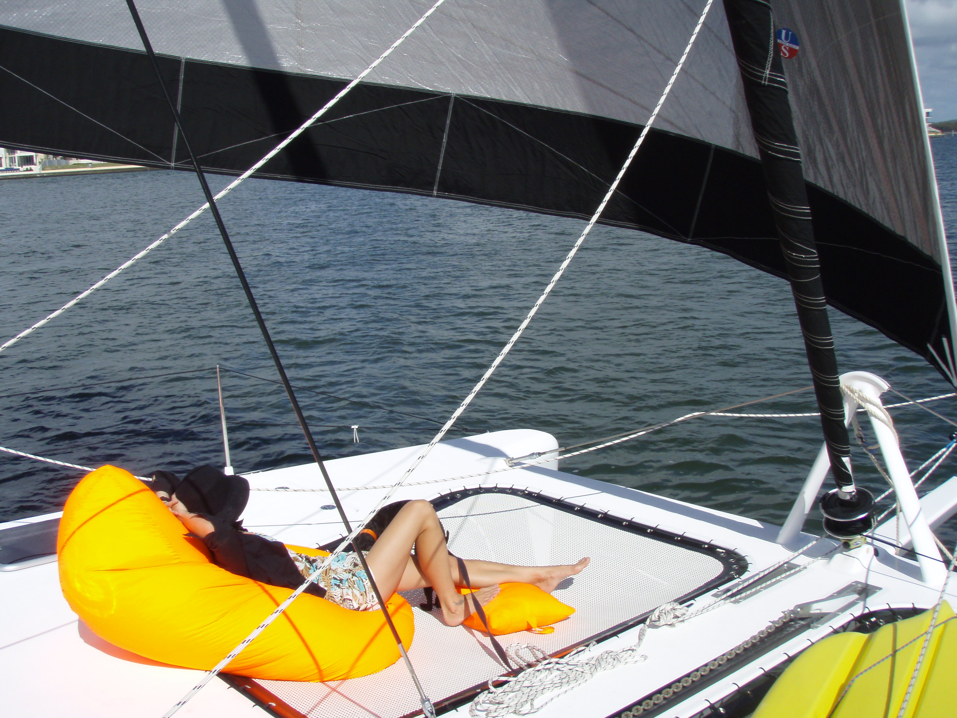 5. Sailing can be stressful and scary. Contrary to what the first mate expected, sailing does not always involve sitting in a bean bag on the front deck reading a good book, looking up every so often to watch dolphins dancing.