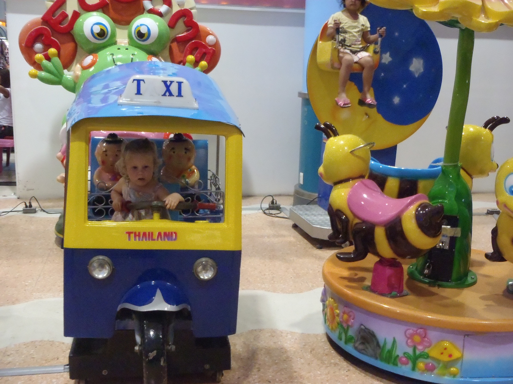 IN-TRANSIT. The 12.5 hour flight from Madrid to Bangkok was a dream. It was extremely comfortable. Willow was an angel. We lucked-in to being allocated four seats in business class in which to spread out. And, there was another little girl in our section for Willow to play with.