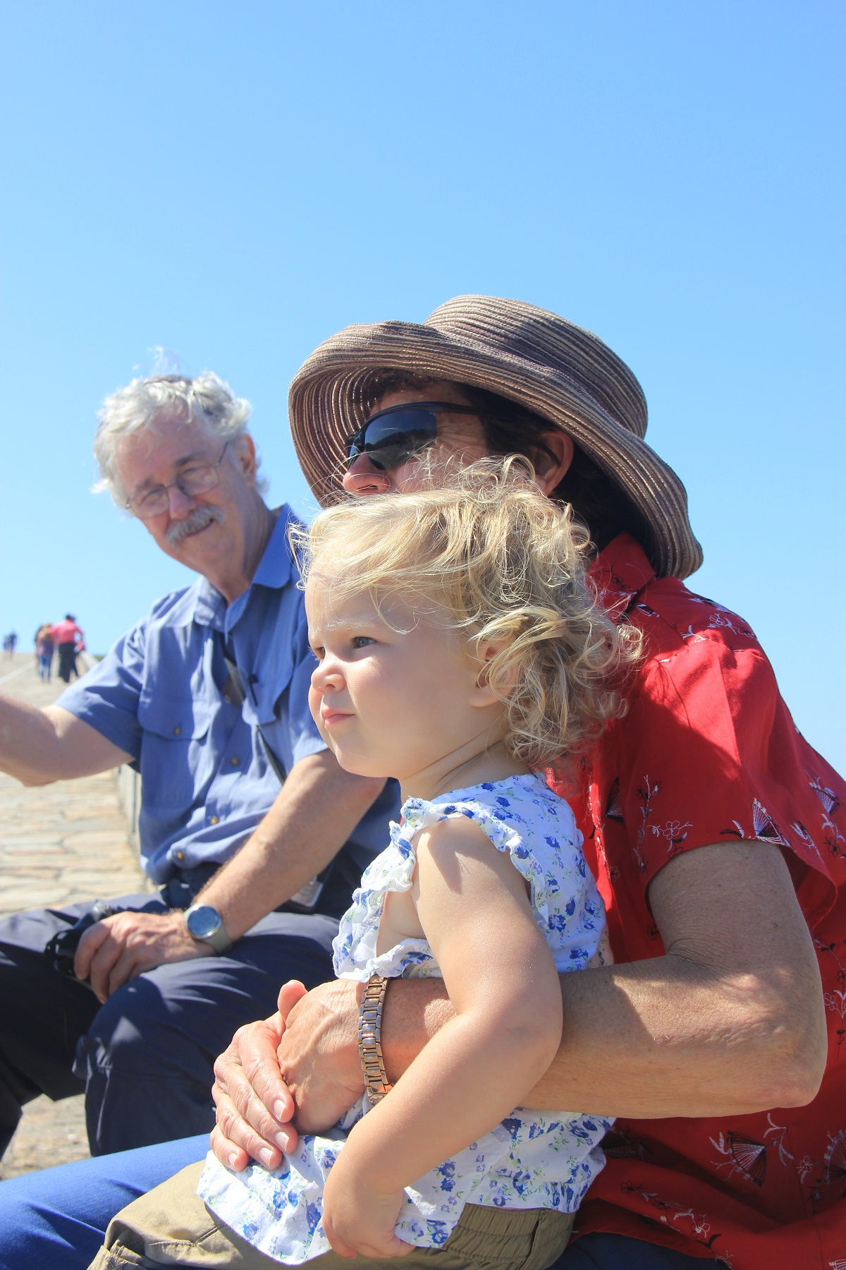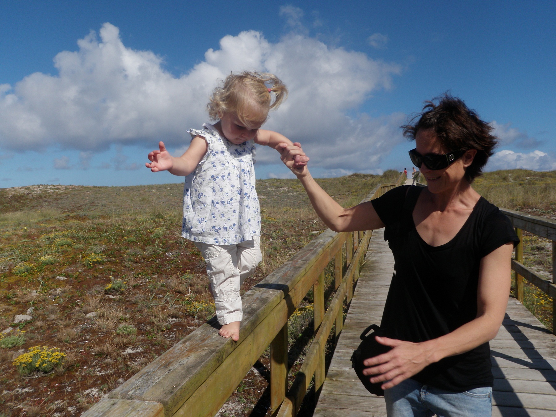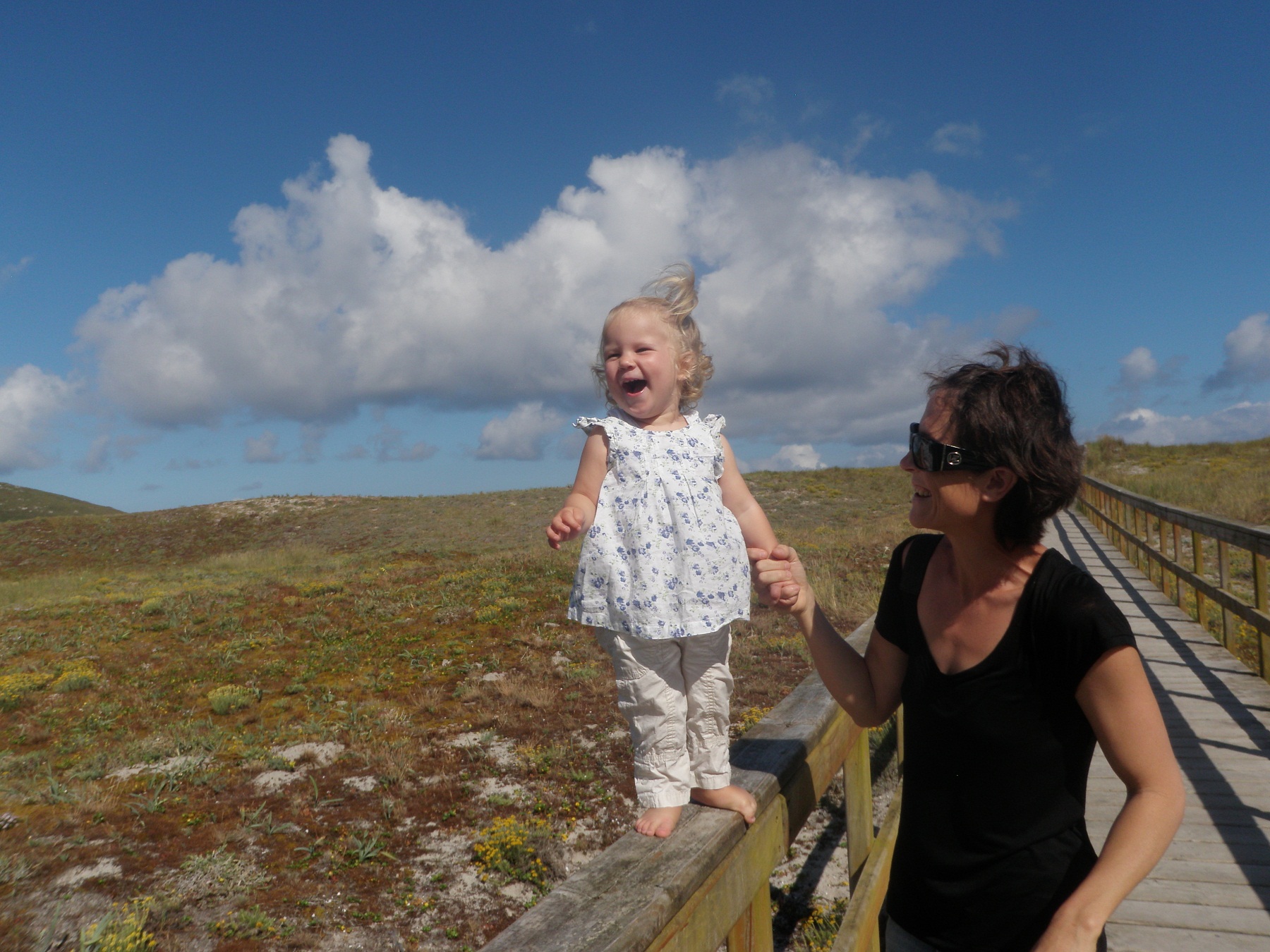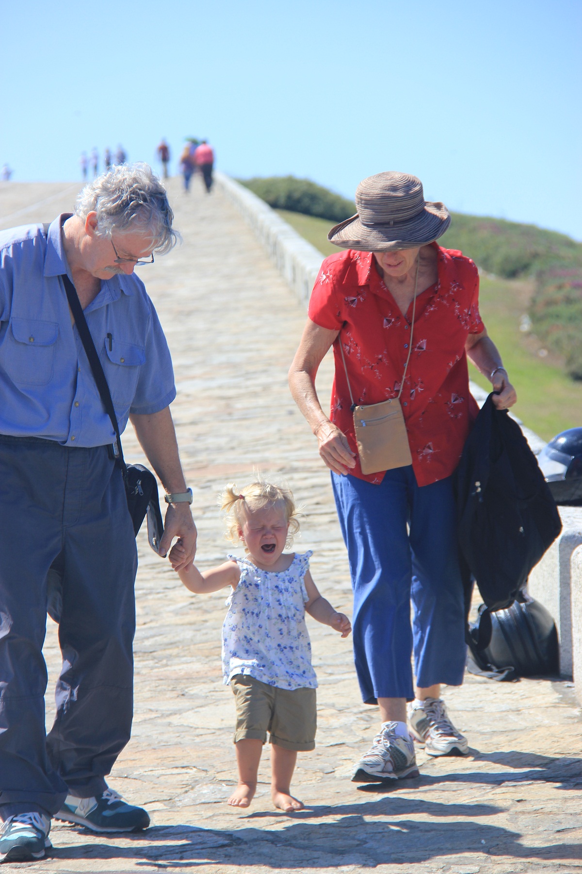 ON TOUR WITH THE GRANDPARENTS ROWNEY. Castles, lighthouses, pre-Christian Celtic ritual places, stunning scenery, beautiful beaches, surf — but unfortunately not on this visit. Willow’s latest obsession is to walk on high narrow platforms. She wanted to walk the length of this broadwalk railing at Soesto Beach.