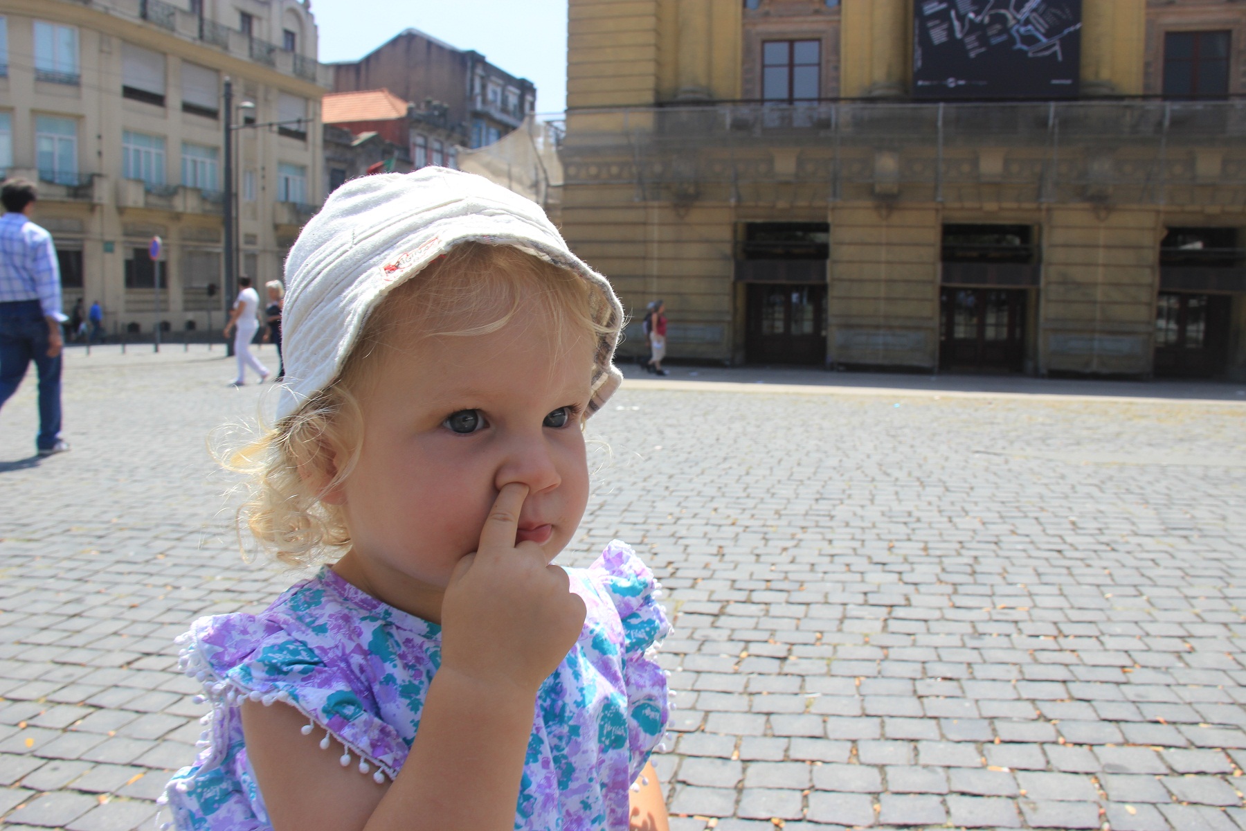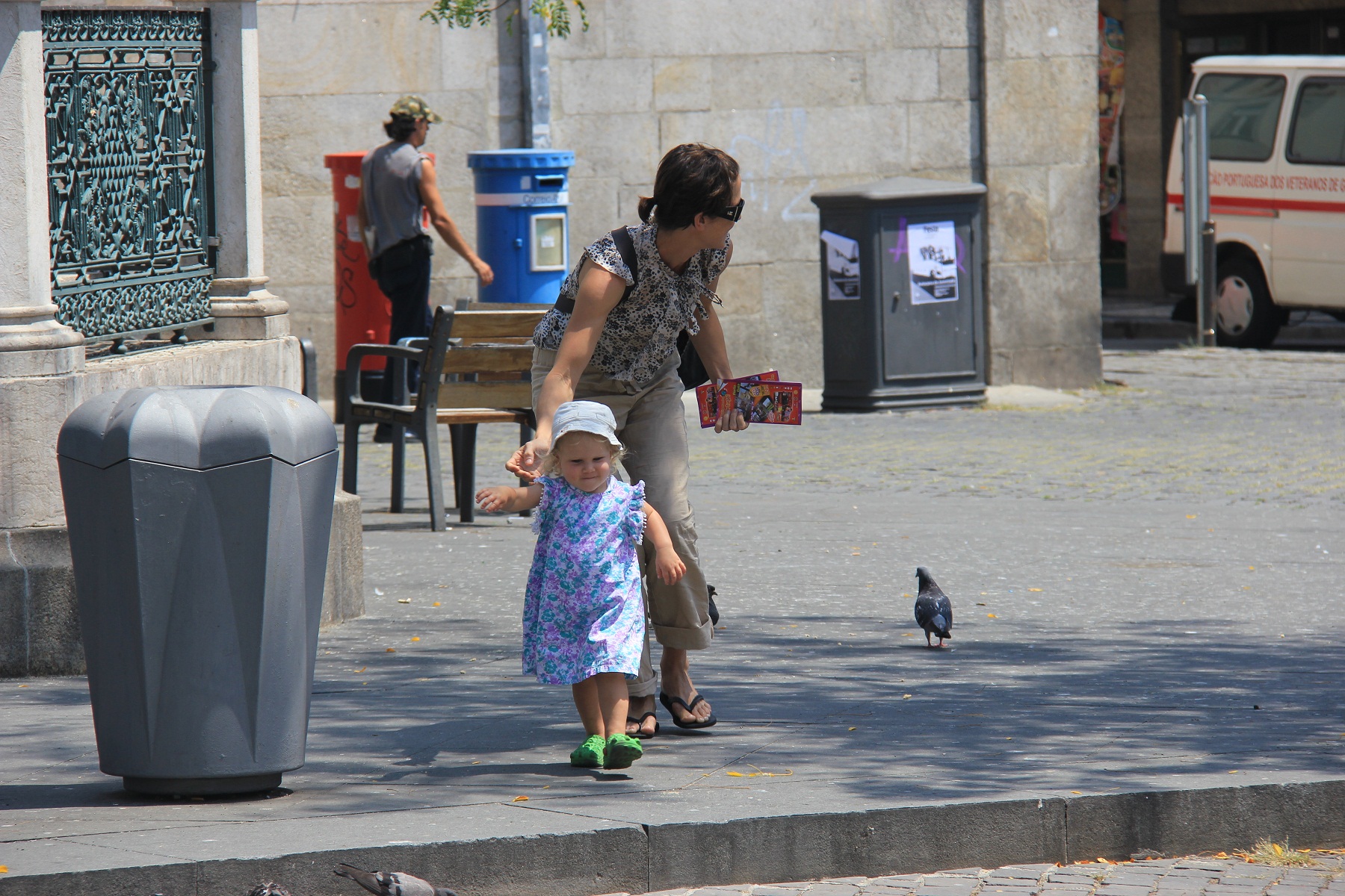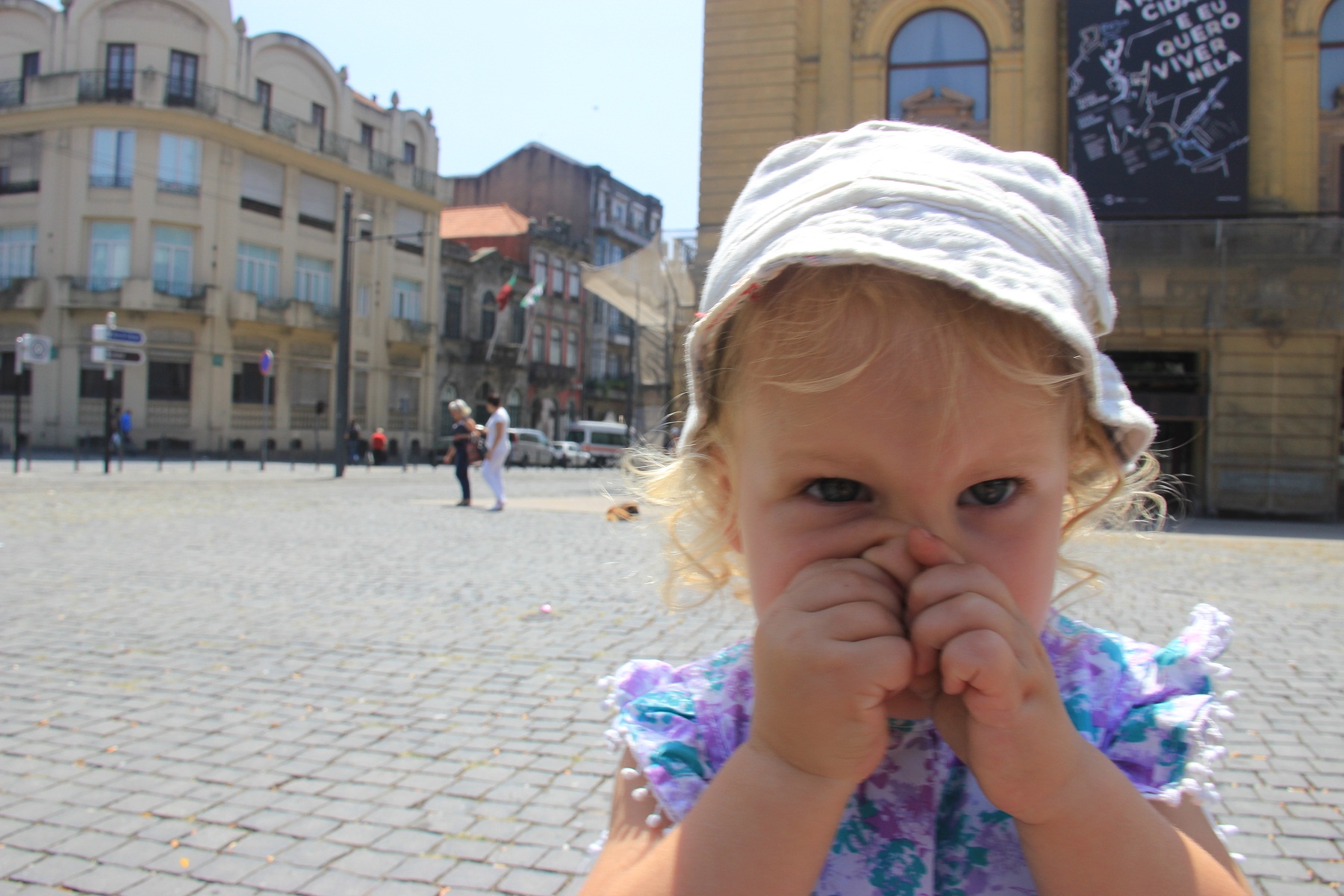 …Praca da Batalha. Chasing pigeons and dodging trams.