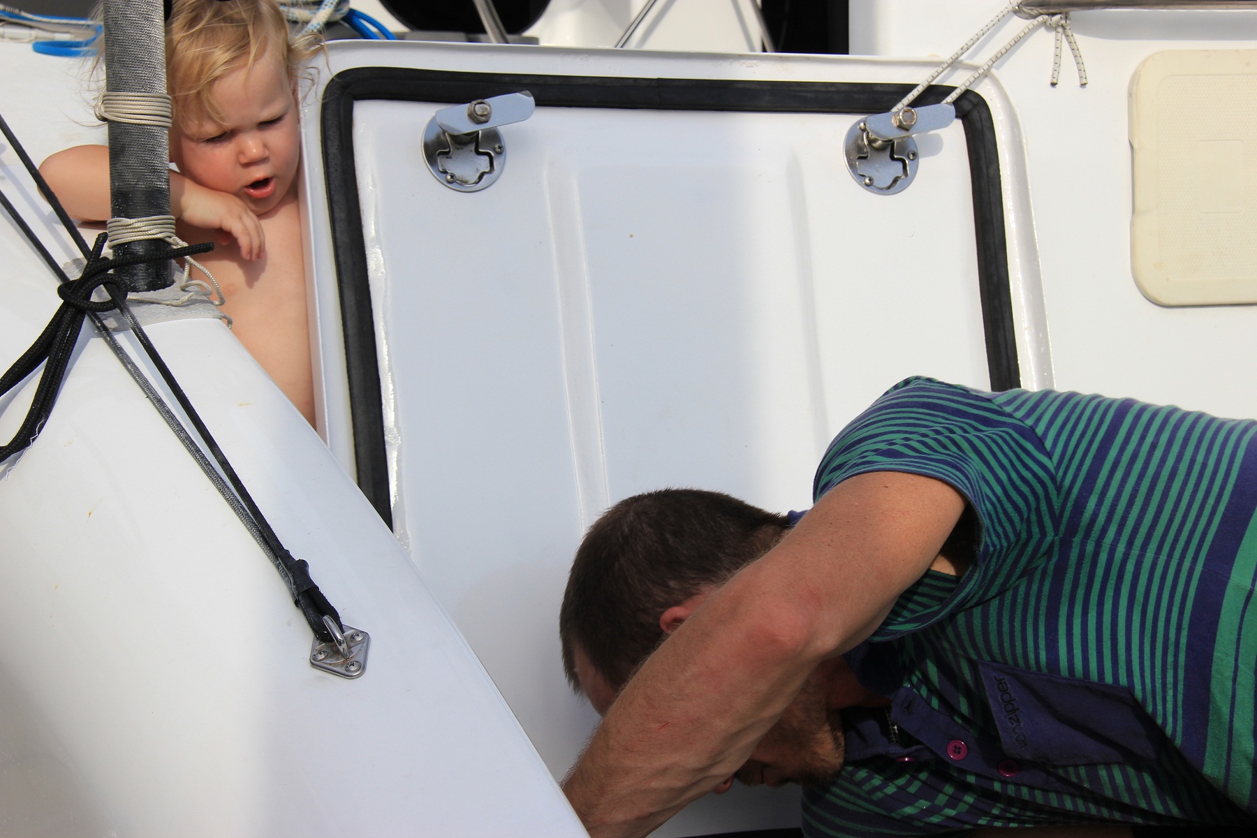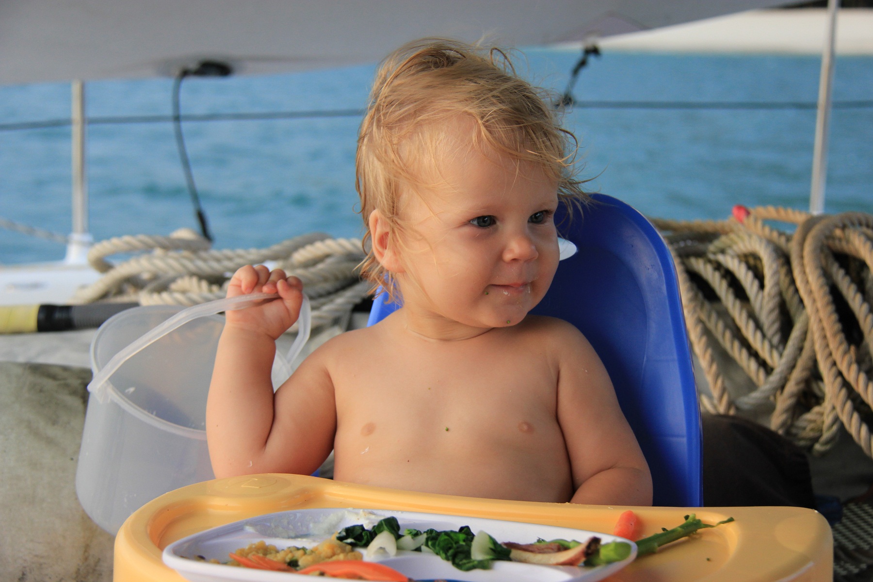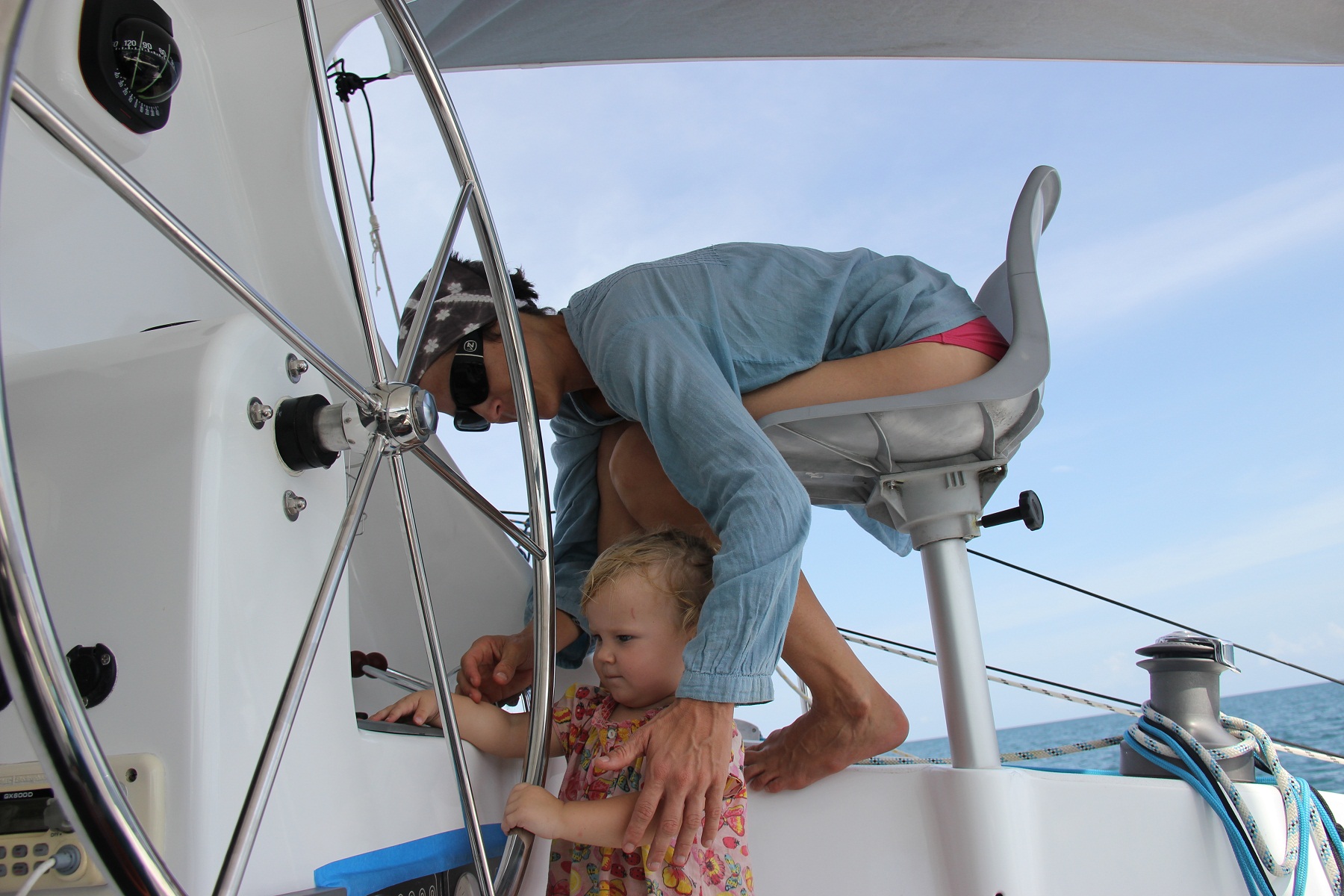 …”Of the many adjectives to describe sailing with kids ‘relaxing’ is not one of them… the most challenging time to sail with kids is when they are between 12 months and 30 months of age” This is from a book about cruising with kids, misquoted but you get the gist. Obviously this is not surprising. We were (sort of) prepared for (a few) challenges. What we were not prepared for is Willow contesting the skipper-age, wrestling the first mate for the reins…