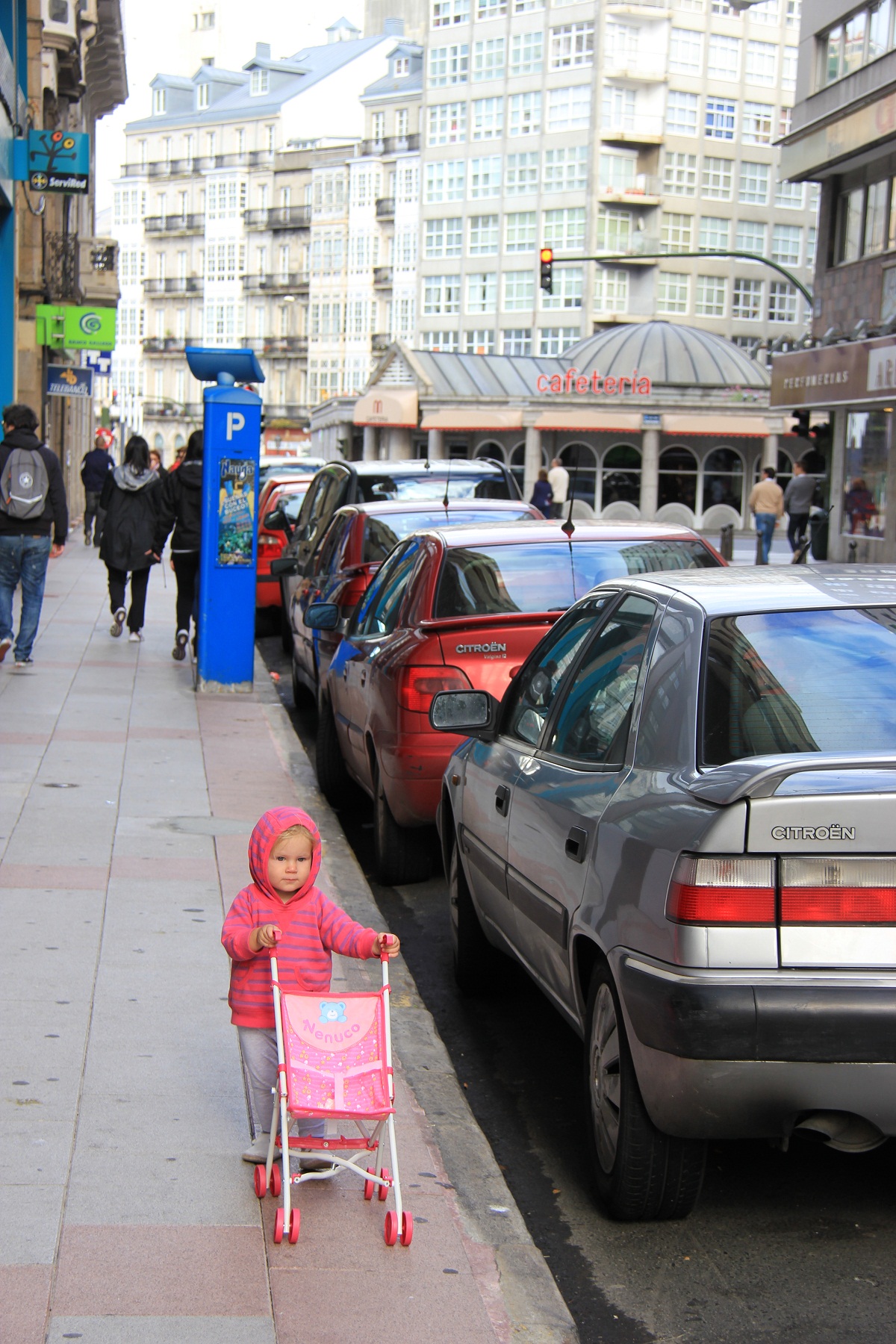 …In Spain, Willow is doing pretty much the same as what she did in Australia and Asia. Pushing her pram.