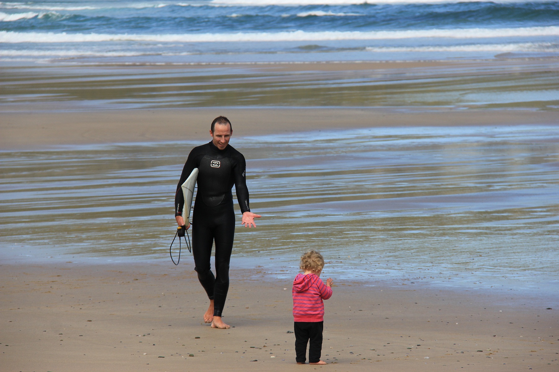 SURFING. We did not expect our first surf after leaving Australia to require 4/3 wetsuits, and boots in my case.