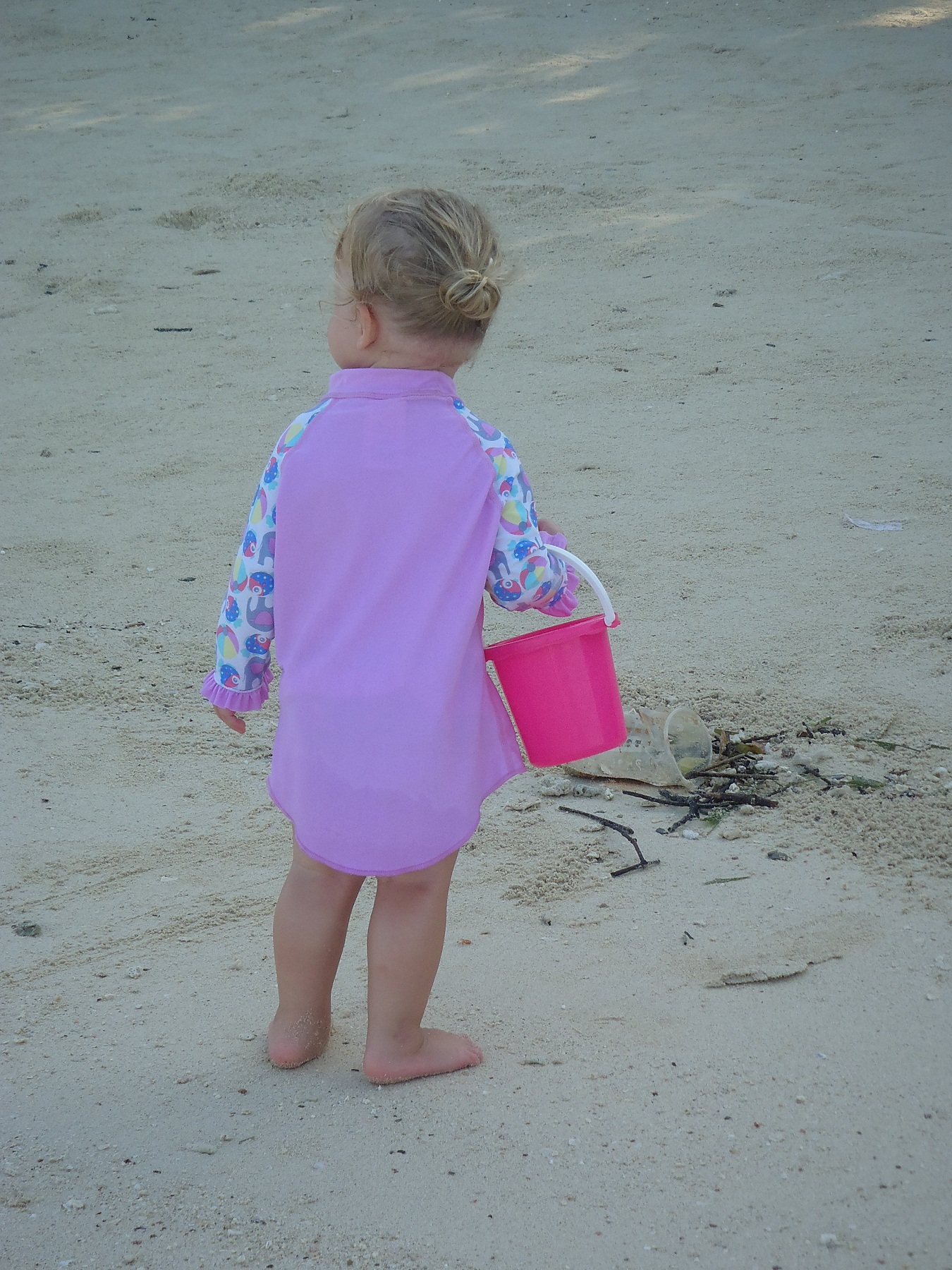 BOAT KID. Willow substituted a bucket for a multi-coloured pencil case as a handbag.
